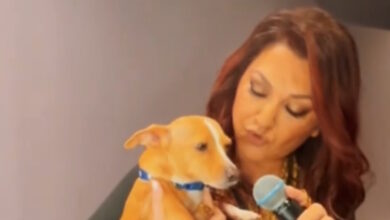 Η Καίτη Γαρμπή στο καμαρίνι της με έναν χαριτωμένο σκύλο