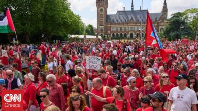 Ντυμένοι στα κόκκινα, δεκάδες χιλιάδες διαδηλωτές, συμπεριλαμβανομένων οικογενειών με παιδιά, κατέβηκαν σε δρόμους στην Χάγη σήμερα για να εκφράσουν τη…