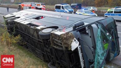 Λεωφορείο που μετέφερε ταξιδιώτες από τη Δανία στην Αυστρία ξέφυγε από τον δρόμο στη βόρεια Γερμανία και ανατράπηκε την Παρασκευή…