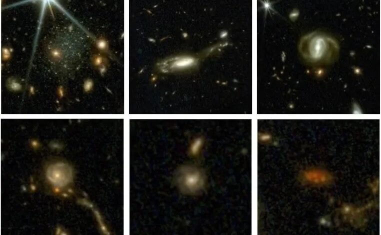 Έξι γαλαξίες από τον νέο χάρτη, ο καθένας με διαφορετική ηλικία. Από πάνω αριστερά προς κάτω δεξιά: από το σημερινό σύμπαν και πριν από 3 δισεκατομμύρια, 4 δισεκατομμύρια, 8 δισεκατομμύρια, 9 δισεκατομμύρια και 10 δισεκατομμύρια χρόνια
