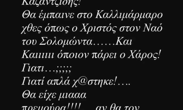 Αν ζούσε ο Καζαντζίδης θα έμπαινε στο Καλλιμάρμαρο όπως ο Χριστός στο ναό του Σολομώντα