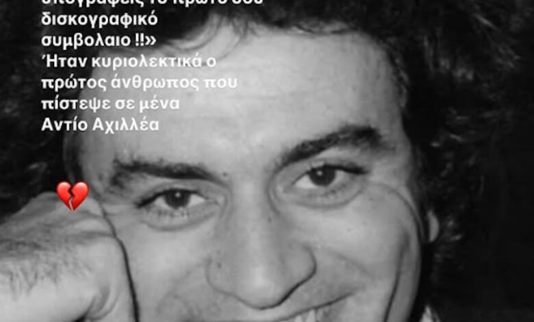 Δεν θα ξεχάσω ποτέ το χαμόγελό του αφού με άκουσε σαν να μου έλεγε “πάμε μικρή να υπογράψεις το πρώτο σου δισκογραφικό συμβόλαιο!”. Ήταν κυριολεκτικά ο πρώτος άνθρωπος που πίστεψε σε εμένα. Αντίο Αχιλλεά», ανέφερε η Άννα Βίσση.