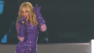 Η Κάιλι Μινόγκ κάθεται στον πάγκο της κουζίνας της και ποζάρει με τις πιτζάμες της, στην πρώτη ανάρτηση που…