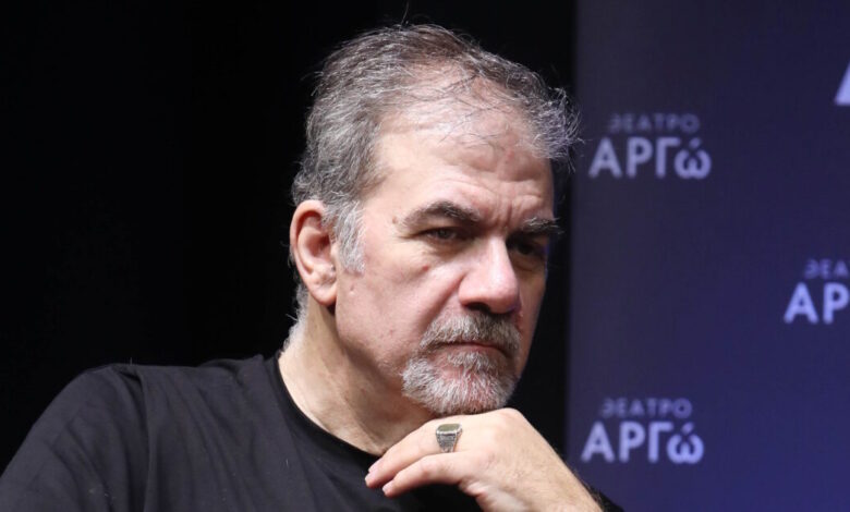 Στο θέατρο, στην πρώτη πρόβα είπα στον Ρήγα “βρες κάποιον άλλον” απελπίστηκα, αλλά βρήκαμε έναν τρόπο να προσαρμόσουμε όλο αυτό και μου βγήκε σε καλό. Πρόκειται στο θέμα της απόδοσης, δεν ήταν όπως ήθελα. Σήμερα έρχομαι από διακοπές τέσσερις ημέρες, παλιά, κάναμε ένα μήνα, ενάμιση μήνα διακοπές πριν από 30 χρόνια. Έχω κάνει από τότε ένα μήνα διακοπές. Βοήθησε λοιπόν η παράσταση, και γενικά θέλει τον χρόνο του».