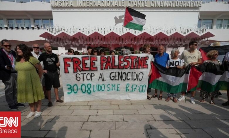Διαδηλωτές ξεδίπλωσαν πανό για τη Γάζα πριν την έναρξη του κινηματογραφικού φεστιβάλ της Βενετίας