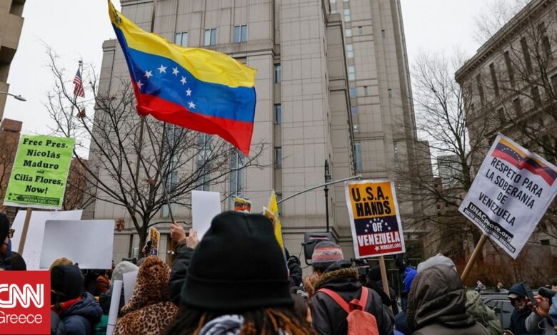 Εκατοντάδες πολίτες συγκεντρώθηκαν έξω από το δικαστήριο της Νέας Υόρκης, όπου οδηγήθηκε ο συλληφθείς από τις ΗΠΑ πρόεδρος της Βενεζουέλας Νικολάς Μαδούρο.