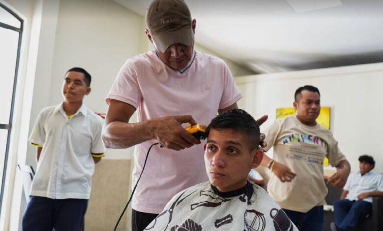 Ένας νεαρός κουρεύεται σε ένα κουρείο για να συμμορφωθεί με τους κανόνες του δημόσιου σχολείου για τα μαλλιά στο Σαν Σαλβαδόρ, Ελ Σαλβαδόρ, Παρασκευή, 22 Αυγούστου 2025.