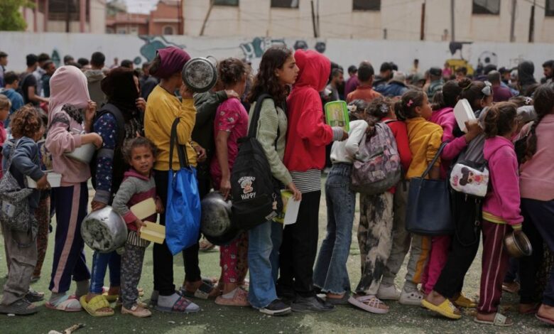Τα παιδιά κάνουν ουρά για φαγητό σε ένα κέντρο διανομής στην κεντρική Λωρίδα της Γάζας