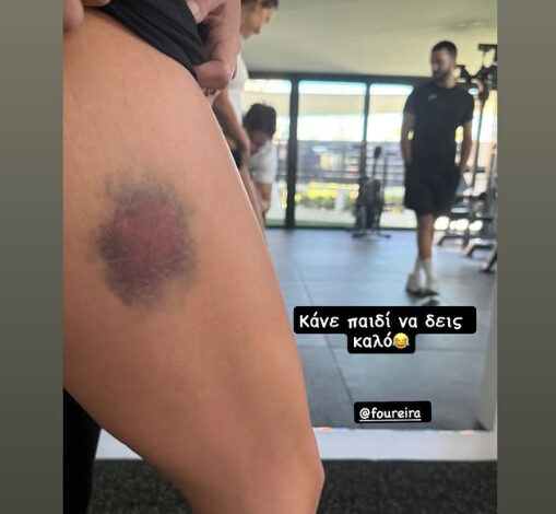 «Κάνε παιδί να δεις καλό», έγραψε ο Πέτρος Τσαπαρδώνης, δημοσιεύοντας τη μεγάλη μελανιά που είχε στο πόδι της η τραγουδίστρια και εκείνη έκανε repost, προσθέτοντας φατσούλες με γελάκια.