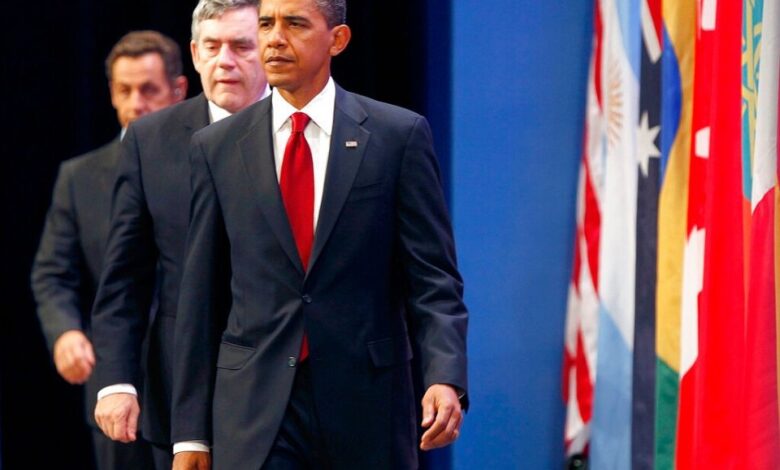 Ο Πρόεδρος Μπαράκ Ομπάμα, ακολουθούμενος από τον Βρετανό Πρωθυπουργό Γκόρντον Μπράουν και τον Γάλλο Πρόεδρο Νικολά Σαρκοζί, ετοιμάζονται να κάνουν την δήλωση για την ανακάλυψη των πυρηνικών εγκαταστάσεων του Φορντό, Παρασκευή 25 Σεπτεμβρίου 2009, κατά τη διάρκεια της Συνόδου Κορυφής της G-20 στο Πίτσμπουργκ.
