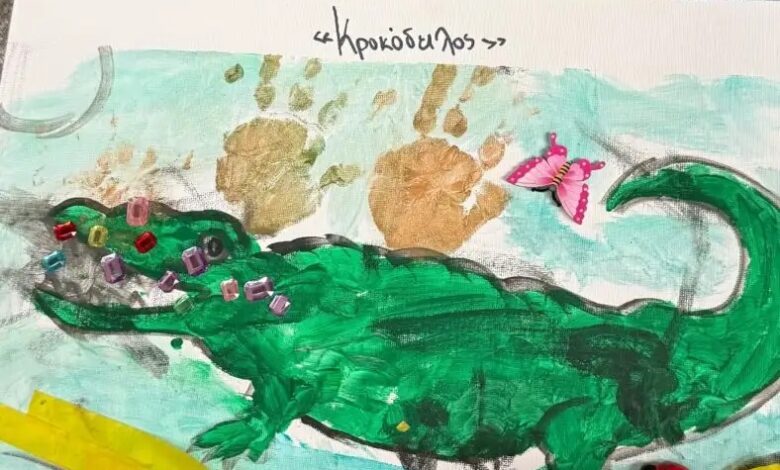 Έτσι λοιπόν σήμερα. μαζί με τον μεγάλο της γιο αποφάσισαν να ασχοληθούν με τη ζωγραφική, με τον μικρό Βλάσση να φτιάχνει έναν κροκόδειλο.