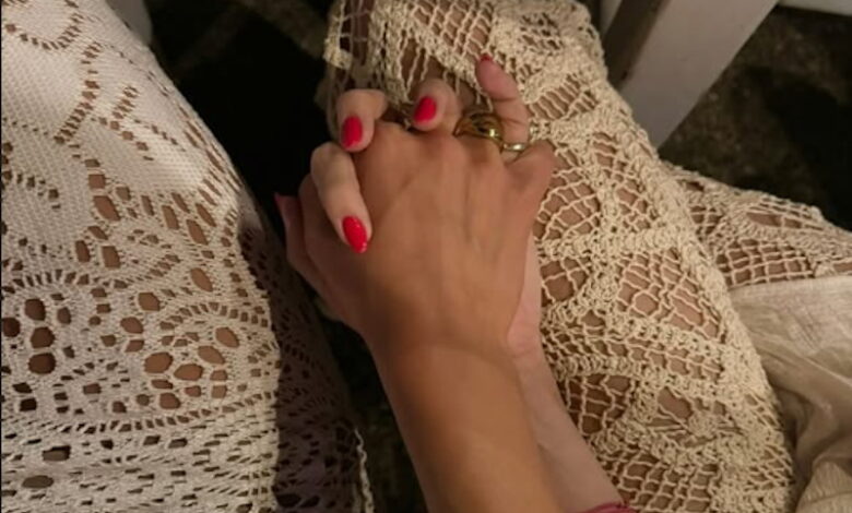 «Το αγγελάκι μου» έγραψε η Μελίνα Νικολαΐδη πάνω σε μία φωτογραφία, στην οποία φαίνεται το χέρι της και το χέρι της Αλεξάνδρας Νικολαΐδου να κρατιούνται σφιχτά.