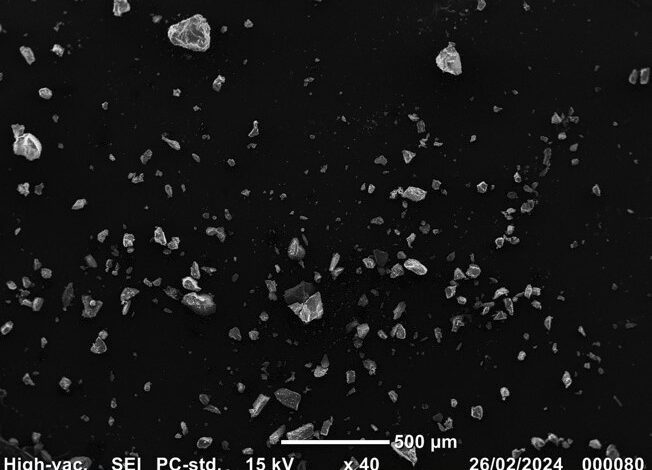 Eικόνα από μικροσκόπιο που αποτυπώνει δείγμα προσομοίωσης σεληνιακής σκόνης.