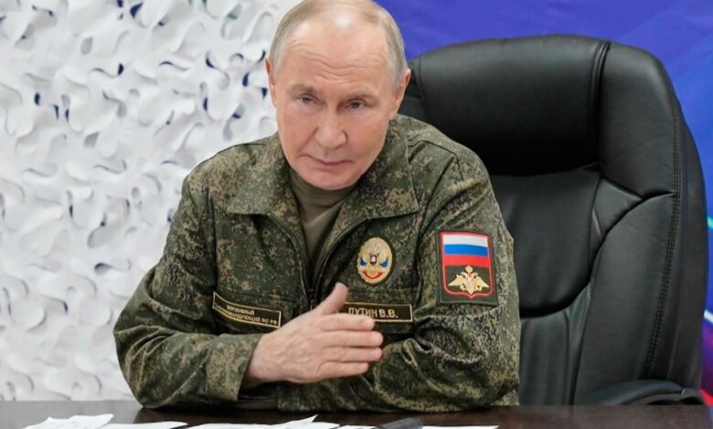 Ο Ρώσος Πρόεδρος Βλαντιμίρ Πούτιν με στρατιωτική περιβολή σε γραφείο διοίκησης του Ρωσικού Στρατού