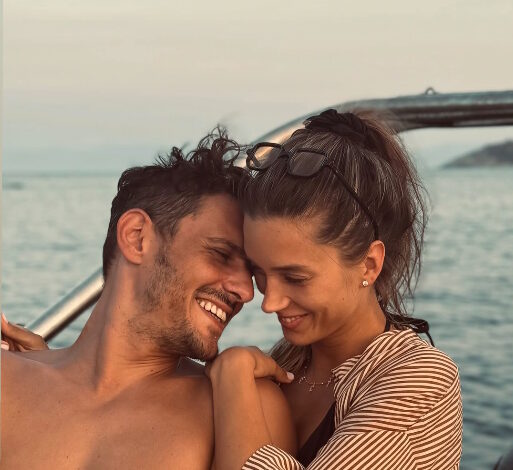 Το ερωτευμένο ζευγάρι ποζάρει αγκαλιασμένο πάνω σε ένα σκάφος με θέα το απέραντο γαλάζιο και δείχνει πιο ευτυχισμένο από ποτέ.