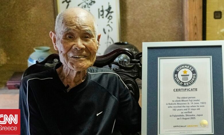 Ο Κοκίτσι Ακουζάουα από την Ιαπωνία στα 102 του χρόνια μπήκε στο βιβλίο ρεκόρ Γκίνες ως ο γηραιότερος άνθρωπος που έχει κατακτήσει την κορυφή του όρους Φούτζι, παρά το γεγονός ότι σχεδόν τα παράτησε κατά τη διάρκεια της πεζοπορίας του στις αρχές Αυγούστου.