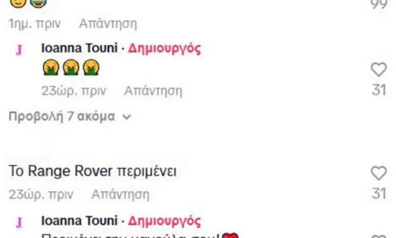 «Το Range Rover περιμένει» γράφει το σχόλιο που έκανε την Ιωάννα Τούνη να ξεσπάσει. «Περιμένει τη μανούλα σου» έγραψε η influencer, με διαδικτυακούς φίλους της, να δικαιολογούν απόλυτα το ξέσπασμά της.