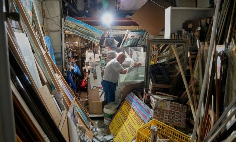 Άνδρας επιθεωρεί τις ζημιές στο κατάστημά του στο Ισραήλ