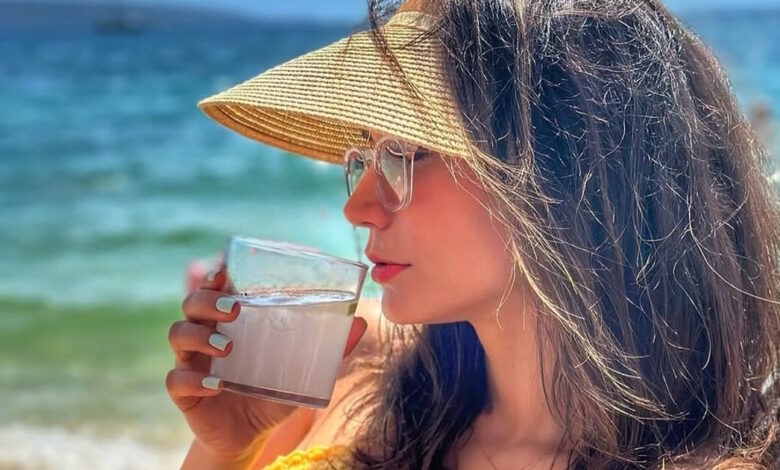 Μάλιστα, σε μία από τις φωτογραφίες, τις οποίες φέρεται να τράβηξε ο Γιάννης Τσιμιτσέλης, η Κατερίνα Γερονικολού απολαμβάνει ολόφρεσκα φρούτα.