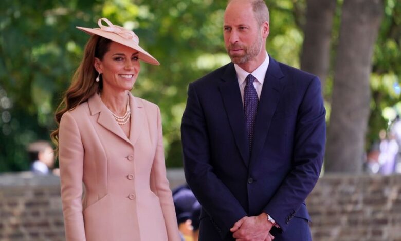 Ο πρίγκιπας Ουίλιαμ εμφανίστηκε κομψός, φορώντας ένα σκούρο μπλε κοστούμι, ενώ η πριγκίπισσα Κέιτ έκλεψε τις εντυπώσεις φορώντας ένα σύνολο που αποτελούσε σαφή αναφορά στους υψηλούς τους καλεσμένους.