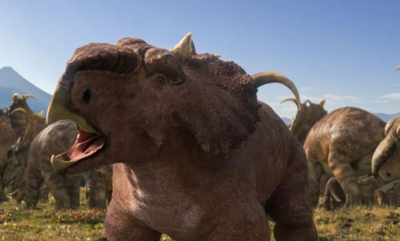 Απεικόνιση Παχυρινόσαυρου σε ένα από τα νέα επεισόδια του ντοκιμαντέρ του BBC «Walking with dinosaurs»