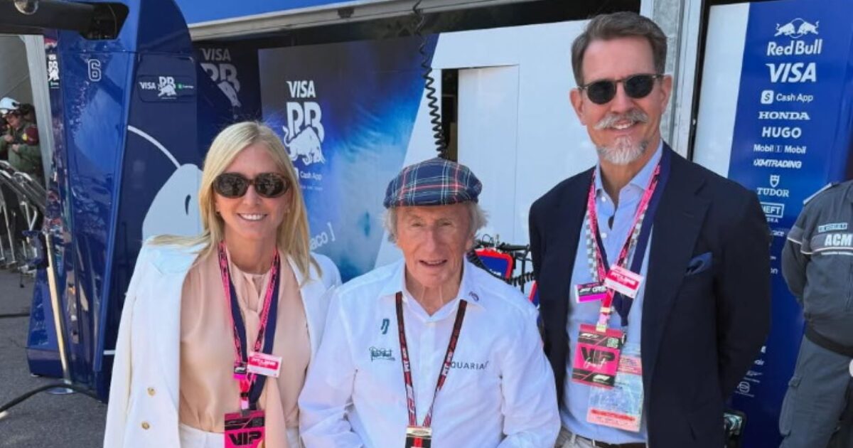 Σε μια από τις εικόνες, το ζευγάρι ποζάρει χαμογελαστό στο πλευρό του βετεράνου οδηγού Τζάκι Στιούαρτ.