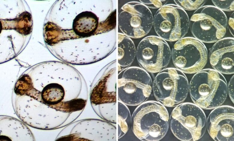 Αυγά λαβρακιού σε 70 και σε 73 ώρες ανάπτυξης. Τα ψάρια θα ταξιδέψουν στο φεγγάρι σε εμβρυϊκό στάδιο, με την εκκόλαψη να έχει προγραμματιστεί κατά την άφιξή τους
