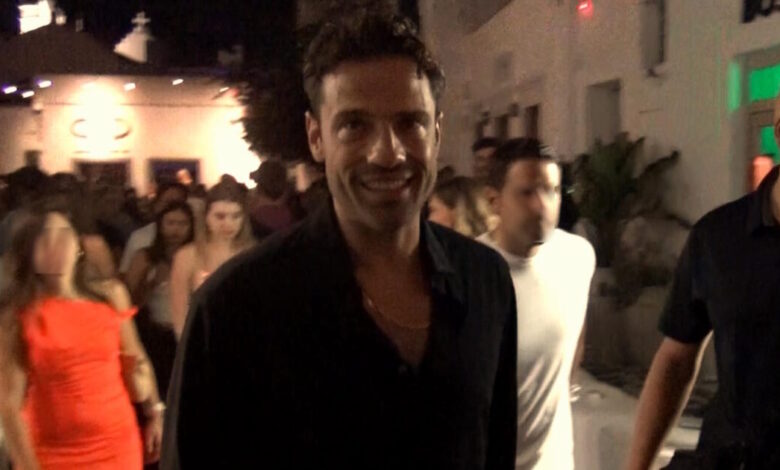 Οι δυο τους προτιμούν να μην μαγνητίζουν τα βλέμματα με την προσωπική τους ζωή, έτσι περπατούσαν ξεχωριστά όταν τους εντόπισε η κάμερα του Mykonos Live TV. Μάλιστα και οι δύο επέλεξαν να ντυθούν με κομψά μαύρα ρούχα κατά τη διάρκεια της εξόδου τους, ενώ μαζί τους βρίσκονταν και άλλα αγαπημένα τους πρόσωπα. Ο τραγουδιστής χαμογέλασε στον φακό την ώρα που τον εντόπισε, ωστόσο δεν έκανε κάποια δήλωση.