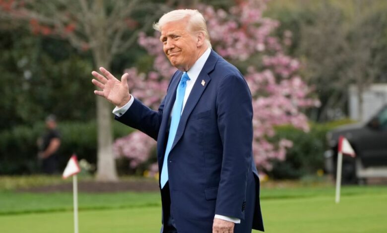 Ο Ντόναλντ Τραμπ χαιρετά δημοσιογράφους και φωτογράφους καθώς πλησιάζει το ελικόπτερό του στο Λευκό Οίκο