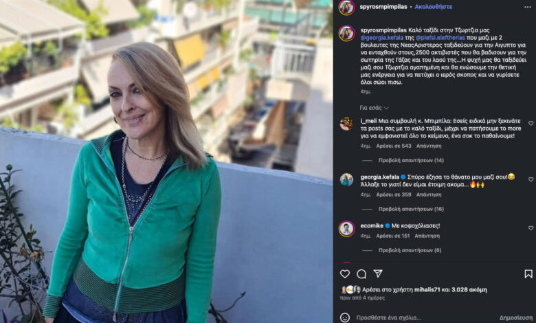 Καθώς η Τζώρτζια Κεφαλά συμμετέχει στην πορεία προς τη Γάζα ο Σπύρος Μπιμπίλας αποφάσισε να της ευχηθεί.