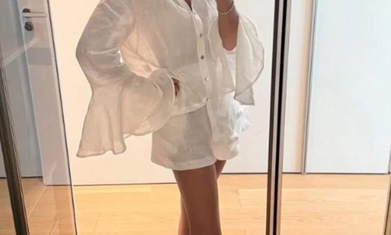 Ποζάρει με λευκό λινό σύνολο μπροστά σε καθρέφτη και αποχαιρετά το φετινό καλοκαίρι
