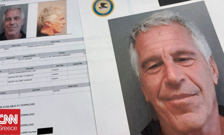 Ο Επστάιν, καταδικασμένος για σεξουαλικά εγκλήματα, εμφανίζεται να φορά πουκάμισο και λευκό παντελόνι.