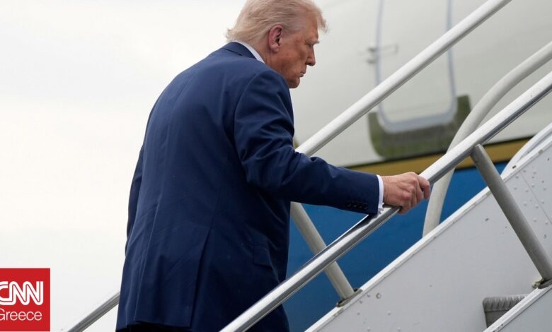 Τη στιγμή που ο Αμερικανός πρόεδρος, Ντόναλντ Τραμπ και ο υπουργός Εξωτερικών Μάρκο Ρούμπιο σκοντάφτουν κατά την επιβίβασή τους στο αεροσκάφος Air Force One πριν την αναχώρησή τους στο Νιου Τζέρσι κατέγραψε η κάμερα.
