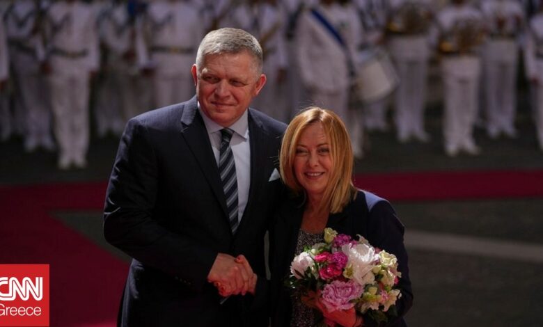 Η Ιταλίδα πρωθυπουργός Τζόρτζια Μελόνι συναντήθηκε το απόγευμα της Τρίτης (3/6) στην Ρώμη, με τον Σλοβάκο ομόλογό της Ρόμπερτ Φίτσο. Όπως αναφέρεται σε κοινό ανακοινωθέν, συζητήθηκε η ενίσχυση της διμερούς συνεργασίας, με ιδιαίτερη έμφαση στην άμυνα, στην ενέργεια και στην ασφάλεια.