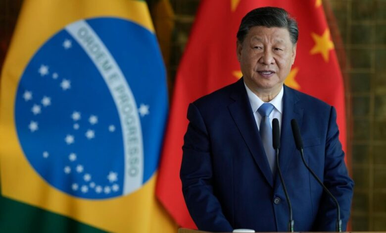 Ο Πρόεδρος της Κίνας Σι Τζινπίνγκ μιλάει κατά τη διάρκεια κοινής συνέντευξης Τύπου με τον βραζιλιάνο ομόλογό του στη Μπραζίλια
