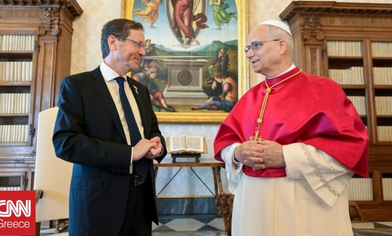 Ο Πάπας Λέων ΙΔ’ συζήτησε την «τραγική κατάσταση στη Γάζα» σε συνάντηση που είχε σήμερα με τον πρόεδρο του Ισραήλ Ισαάκ Χέρτσογκ και έκανε έκκληση για μόνιμη κατάπαυση του πυρός στον παλαιστινιακό θύλακα, ανακοίνωσε το Βατικανό.