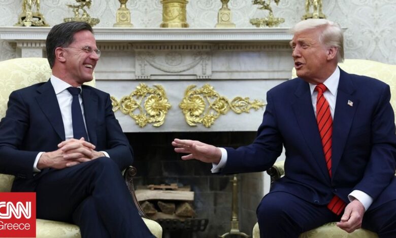 Στο μακροσκελές μήνυμα, ο Μαρκ Ρούτε συγχαίρει επίσης τον Τραμπ για την πίεση που ασκεί στις χώρες του ΝΑΤΟ να αυξήσουν τις αμυντικές τους δαπάνες στο 5% του ΑΕΠ έως το 2035.