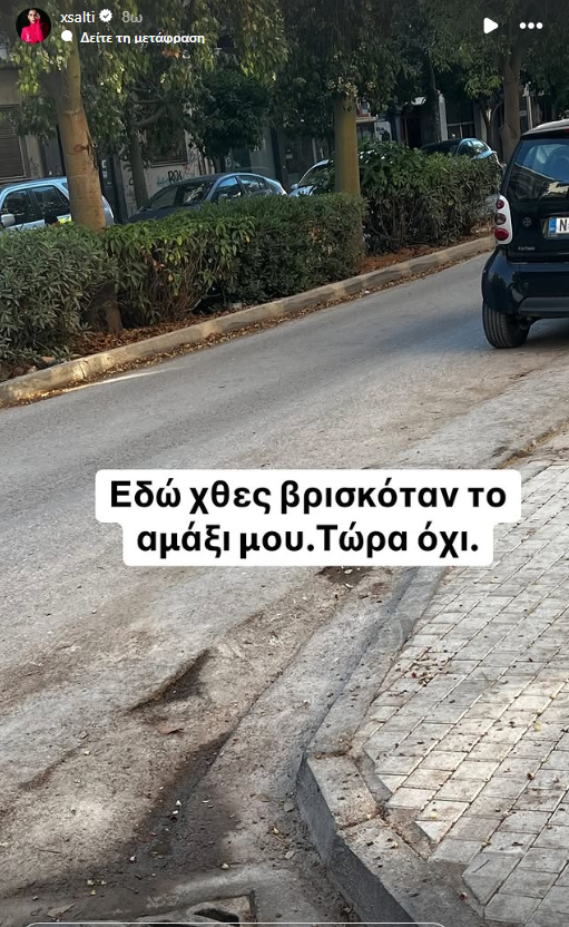 «Εδώ χθες βρισκόταν το αμάξι μου. Τώρα όχι», έγραψε η τραγουδίστρια, δημοσιεύοντας μία φωτογραφία από το σημείο, όπου είχε παρκάρει το όχημά της.