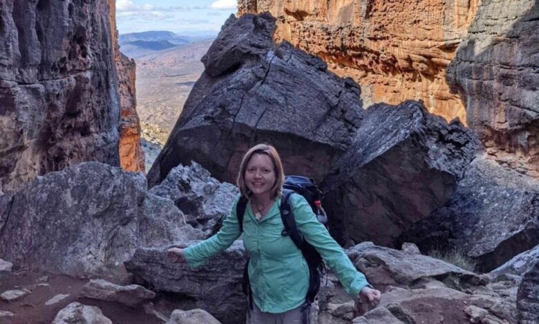 Η παλαιοντολόγος Σάρα Γκάμποτ στο σημείο όπου ανακάλυψε το απολίθωμα