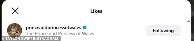 Σύμφωνα με το Τοwn and County το βασιλικό ζευγάρι έκανε «like» στην ανάρτηση μέσω του επίσημου λογαριασμού τους στο Instagram, @princeandprincessofwales.
