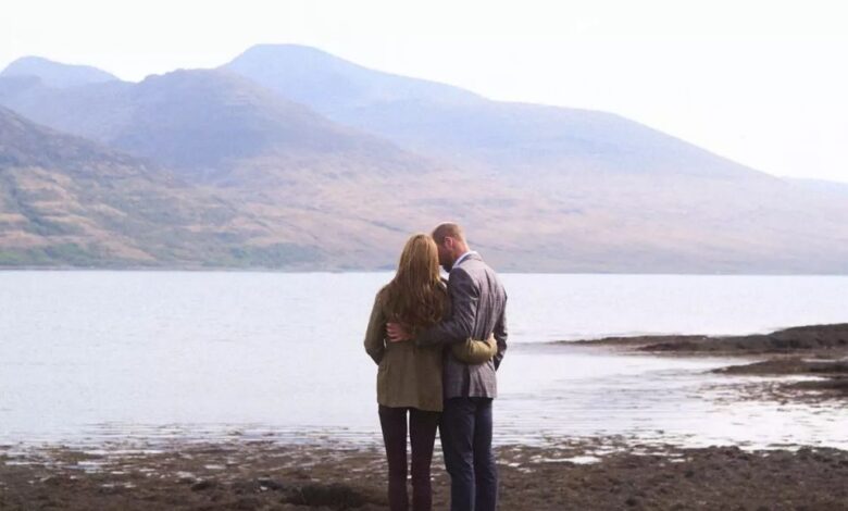 Η φωτογραφία δείχνει τον 42χρονο Γουίλιαμ και την 43χρονη Κέιτ με γυρισμένη την πλάτη σε μακρινή απόσταση από την κάμερα να αγκαλιάζονται, καθώς απολαμβάνουν το όμορφο τοπίο.