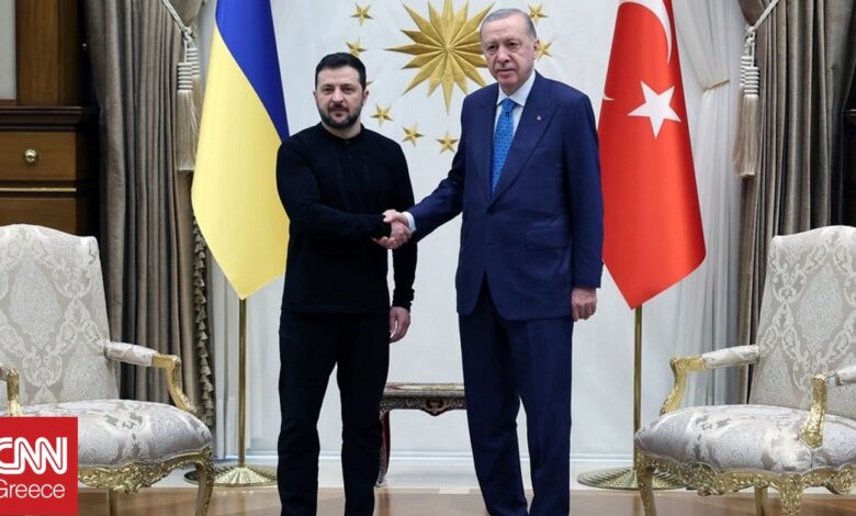 Σε εξέλιξη βρίσκεται η συνάντηση του Ρετζέπ Ταγίπ Ερντογάν με τον Βολοντίμιρ Ζελένσκι στο προεδρικό Μέγαρο στην Άγκυρα.